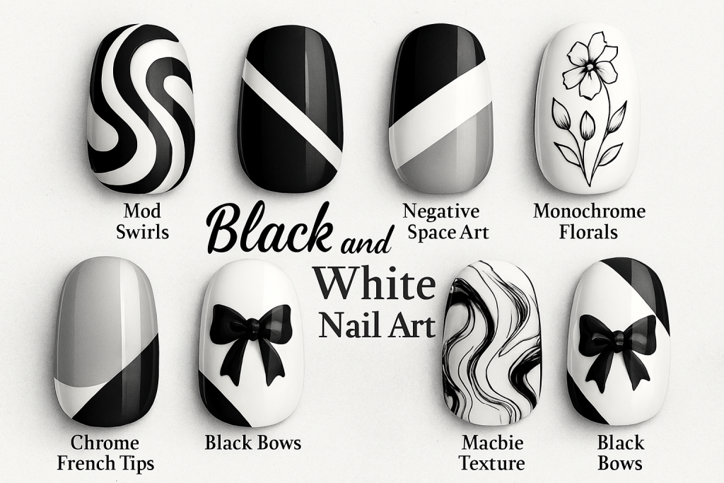 Q1: What’s trending in black and white nail art this year? Mod swirls, checkerboards, and marble textures are top picks for mapped contrast and charm.