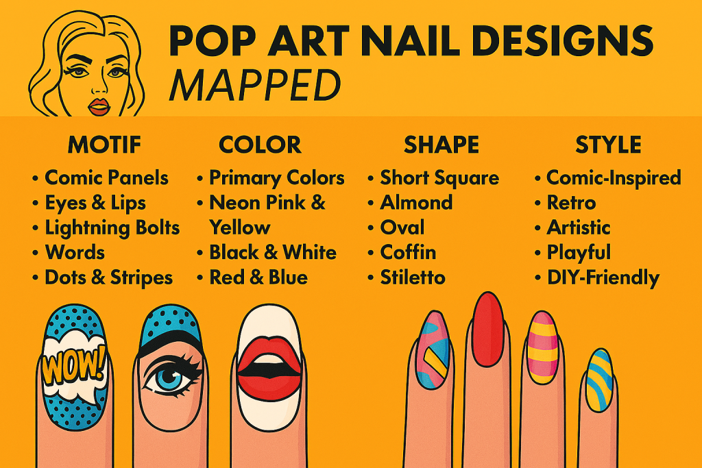 🎨 Pop Art Nail Designs 2025: Mapped by Motif, Color, Shape & Style