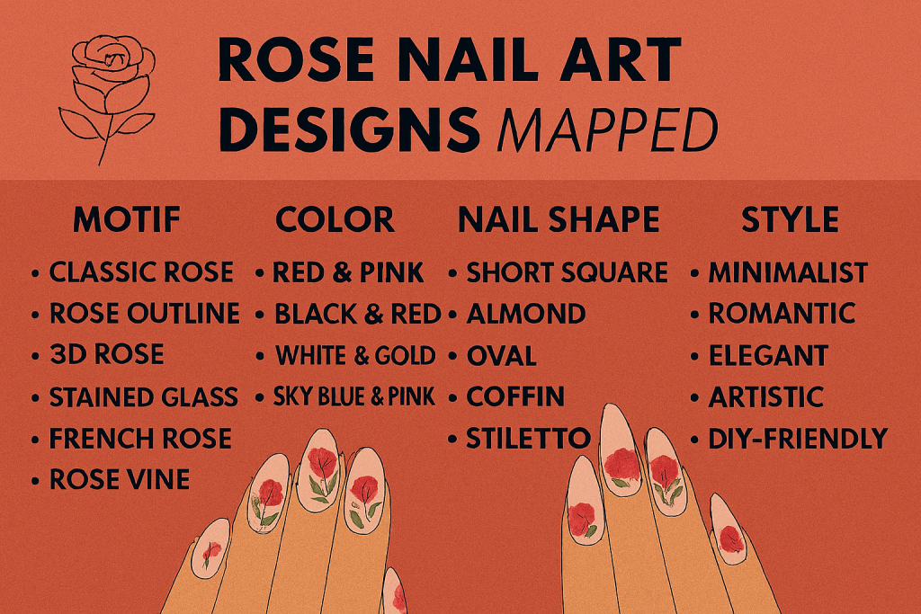 🌹 Rose Nail Art Designs 2025: Mapped by Motif, Color, Shape & Style