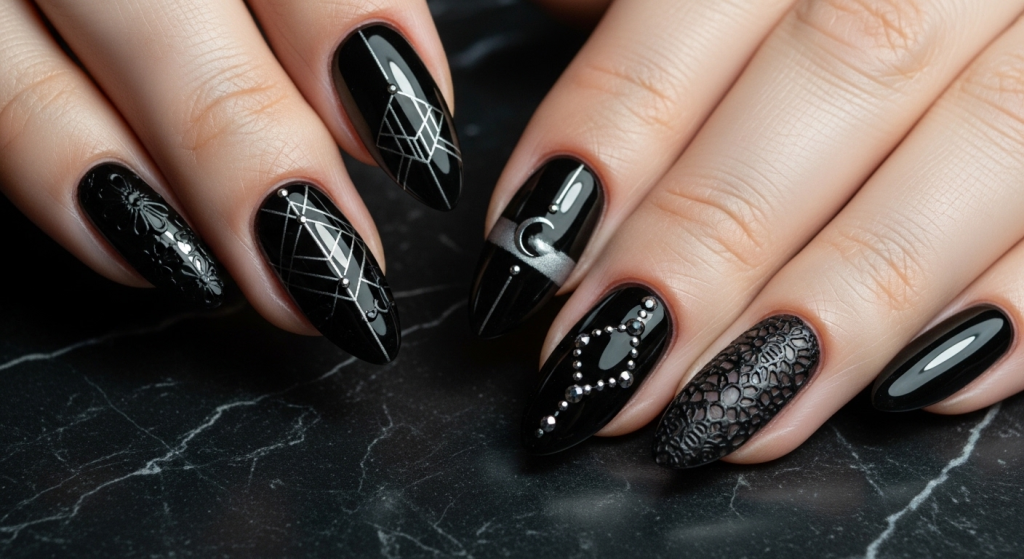 Because black absorbs all light, 2026 artists play with reflectivity to create depth. When you “map” a black nail set, you aren’t looking at color; you’re looking at the interaction of photons.